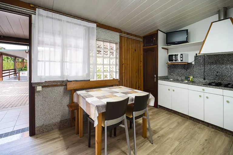 Todos los bungalows cuentan con porche, agua caliente, nevera (sin congelador), microondas, menaje y utensilios de cocina, vajilla, cubertería, cafetera, televisión, armario, sábanas, mantas y utensilios de limpieza. Acceso a Internet Wi-Fi gratis.