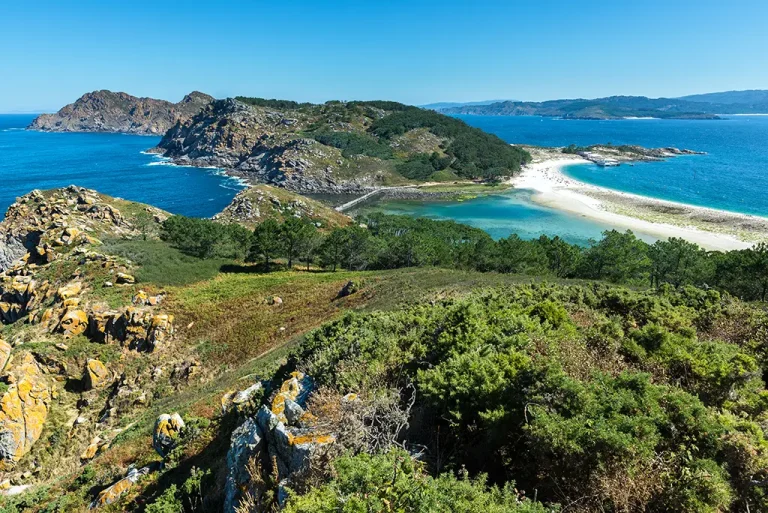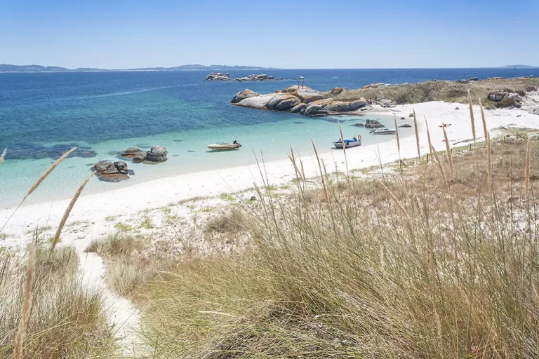 And also, throughout the estuary, beaches and more beaches. The islands of Sálvora, Cortegada, Arousa or Toxa, with their spas, pine forests and elegant hotels. Or the animation of Rianxo, Boiro or Ribeira; the lordship of Cambados, capital of Albariño, with the impressive Pazo de Fefiñáns square. And not to miss anything, the spectacular A Curota viewpoint in A Pobra do Caramiñal.